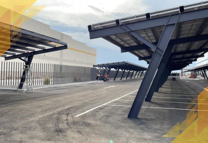 En el estacionamiento de la Planta BOSCH en Querétaro, se desarrolló la fabricación y montaje estructural del carpot conformo a ingeniería proporcionada por el cliente, así también el montaje e instalación de SFV interconectado a la Red.